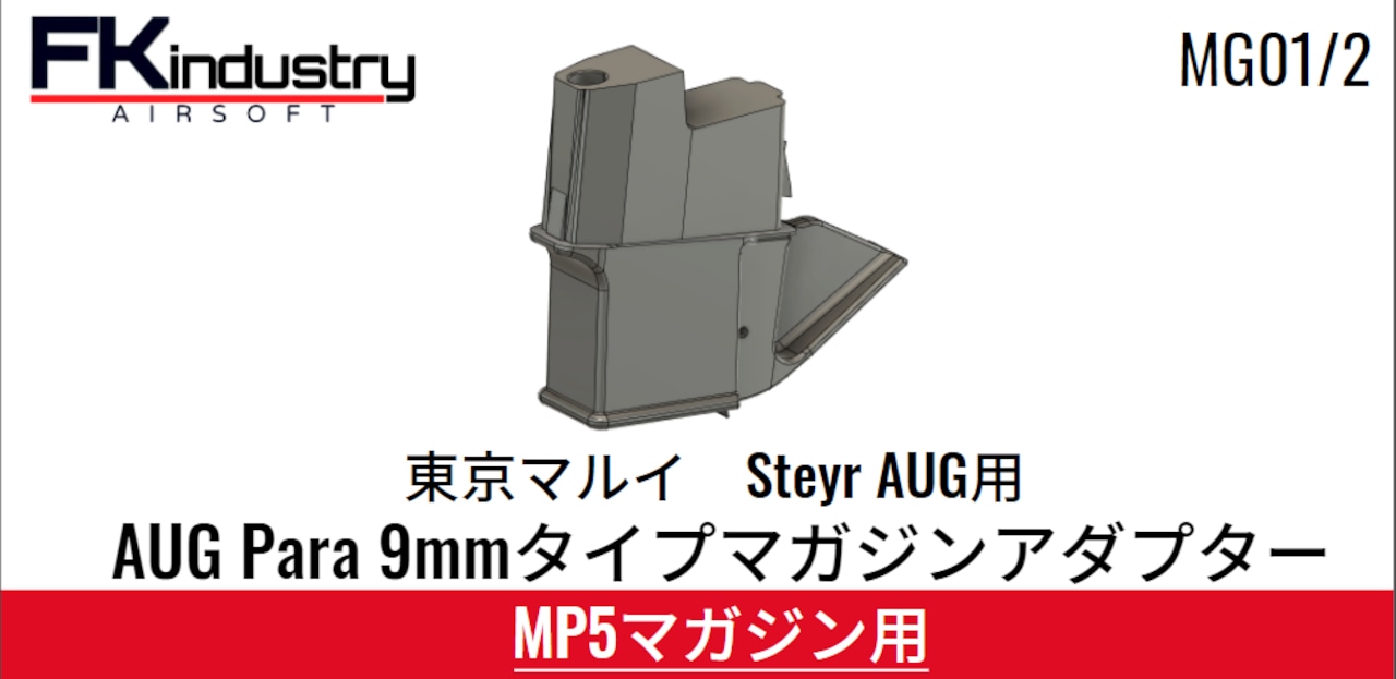 本製品を取り付け、MP5マガジンを差し込むことでAUG 9mmSMGのような外観にすることが出来ます。